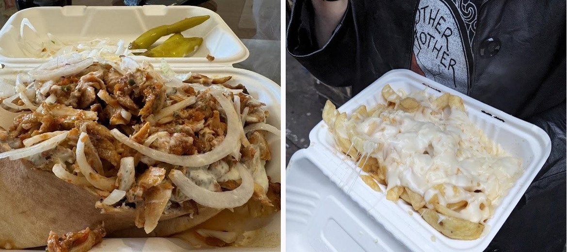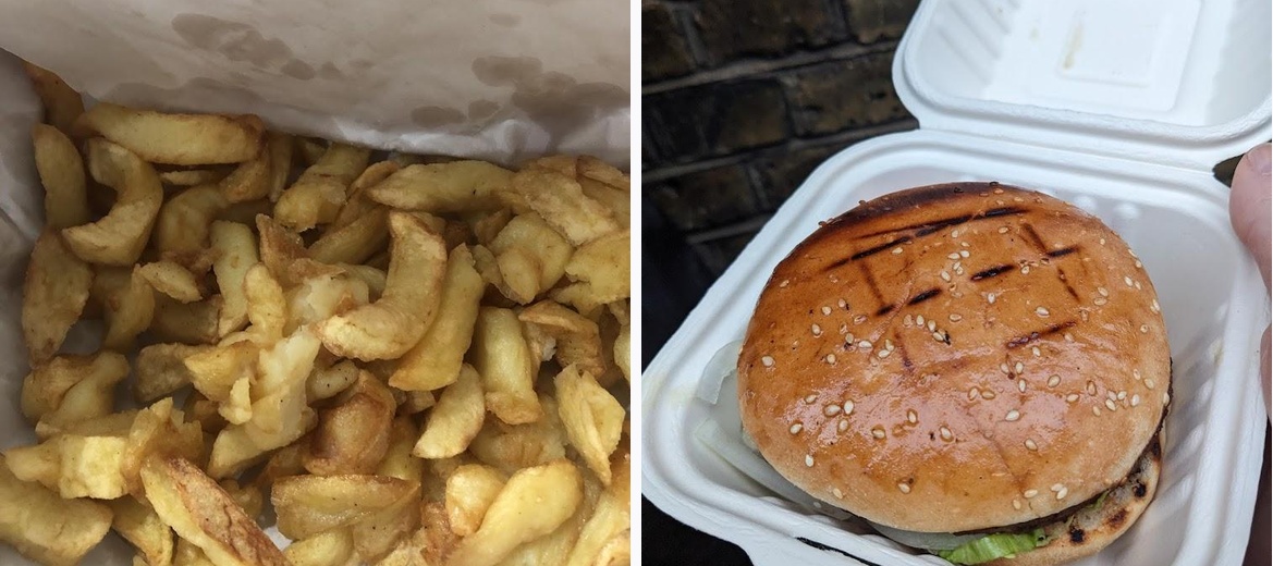 Two doors from Troxy, we got a burger and cheesy chips before. Chips well cooked and generously cheesy. Burger was very tasty with a selection of salad available.